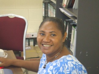第1号は、もうすぐ勤続5年目になるメリーさんです。彼女は、敬虔なカトリック信者で、かつて、 教会のボランティアで日本に約4年住んでいました。そういった経歴からくる優しさからか、年配のお客様には絶大な人気を誇る彼女ですが、 実は、口論したら男性も顔負けの肝っ玉姉さんです。数年前、ツアーのお手伝いで、地方へ出張した際、ホテルが60人もの団体に対応できず、 夕食がなかなか出て来なかった時、彼女の怒りが爆発、たまりかねてキッチンを「乗っ取り」、スタッフの尻を叩きつつ、 的確な指示を出してその場を乗り切ったと言う伝説は、 PNGでも語り草となっています。