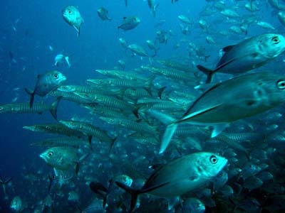 潮回りがよいときは、多くの大物が期待できます。ギンガメアジやバラクーダの群れをはじめ、ホワイトチップやグレーリーフ・シャーク、