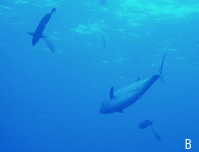 …シーズンによってはモブラがホーバリングしたりギンガメの幼魚、ブラックフィンバラクーダの親子がいたり…10000匹のアジダマが出来てたりします。