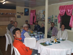 山登りの前日。ベティーズロッジにてのひととき。和気藹々でとても良い雰囲気です。実はこのとき、みんな、