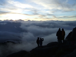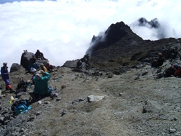 夜中の12時に出発してやっと、ここまで登ってきました。ご来光も拝んで・・・・。でも、待ってください。