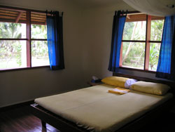 部屋はトイレ+シャワー付が4部屋、共同トイレ+シャワーの部屋が3部屋。 昔のシパダンの宿を想像するかも知れないけど全然マシ。部屋もトイレ+シャワーも清潔で良い! 水シャワーだけど暑いからかえって気持ちが良い!料理はオーナーのディトマーとエンジーが作っててとっても美味しい! たまにピィーも手伝うけど・・・ちょこっとね。食事時になると鐘を鳴らしてゲストを呼ぶスタイル。毎日デザート出るし、 2週間で1kgは確実に太ったのでは?困るよね??料理が美味しいのも(笑)。おすすめ地物のマッドクラブ(マングローブガニ) とロブスターは必ず食べれるようになってる。う-んヤミー(ディットマーの口癖)