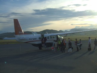 オルカでも出たのかな〜と思いながら安全停止をしてボートに戻り<WHY?>とドライバーに聞くと、やはりオルカでした。ワリンディのすぐ近 くで出たからすぐ行こう!というんです。今戻ってもそんなにオルカがいつまでもいるとは思えないし、半信半疑でしたが.でもたしかに2杯のディンギーがい ました。片方のディンぎーが<あっち>というように指差しています。本当かな〜と思いながら移動していく途中で水しぶきを見ました。そしてフィンが見えま した。オルカ!そして近ずくとオルカの姿も水面から見えました。ボートのほうによってきます!スゴ〜イ!水に入ろう!!と思ったとたん、いなくなってしま いました。残念、と思いつつ、水面を探して、だめか!と思いかけたとき、また水面にフィンが見えました。ボートの前に、今度こそ!と思いゲストと用意をし て水中に入りました。いましたすぐ近くに、そしてこっちに寄ってきました。あのパンダみたいな白と黒が見えて、目まで見えました。3匹!1匹が子供みたい で少し小さくて、お父さんと、お母さんにはさまれているという感じで泳いでいました。みんな感激しました。これを数回しましたが、なんという予想外のハプ ニング!最後は水面に浮いている私たちの下を泳いでどこともなく行ってしまいました。いいフィナーレでした。