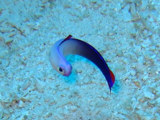 こんにちは、ワリンディの恵子です。ワリンディでは大物、小物幅広く見られますが、見られるだけでなくて、とてもフレンドリーです。アケボノハゼ、普通はすぐに隠れがちでしょう、それが穴から出てホバーリングしていることもたびたび。10cmは普通、30cmくらい穴から離れてホバーリングしていることもあります。写真にはいいモデルです。こんな見返り美人をしてくれたり、スズメダイともこんなに仲良し!以前はおまけに水深17m、最浅は13mにもいました。逃げない!、浅い!、そして愛嬌もの!こんないいモデル海の中にいますか?残念なことに今はこの水深にはいませんが、何箇所かにいたということはまた見る可能性も無きにしも非ず!がんばって探しておまちしてます。